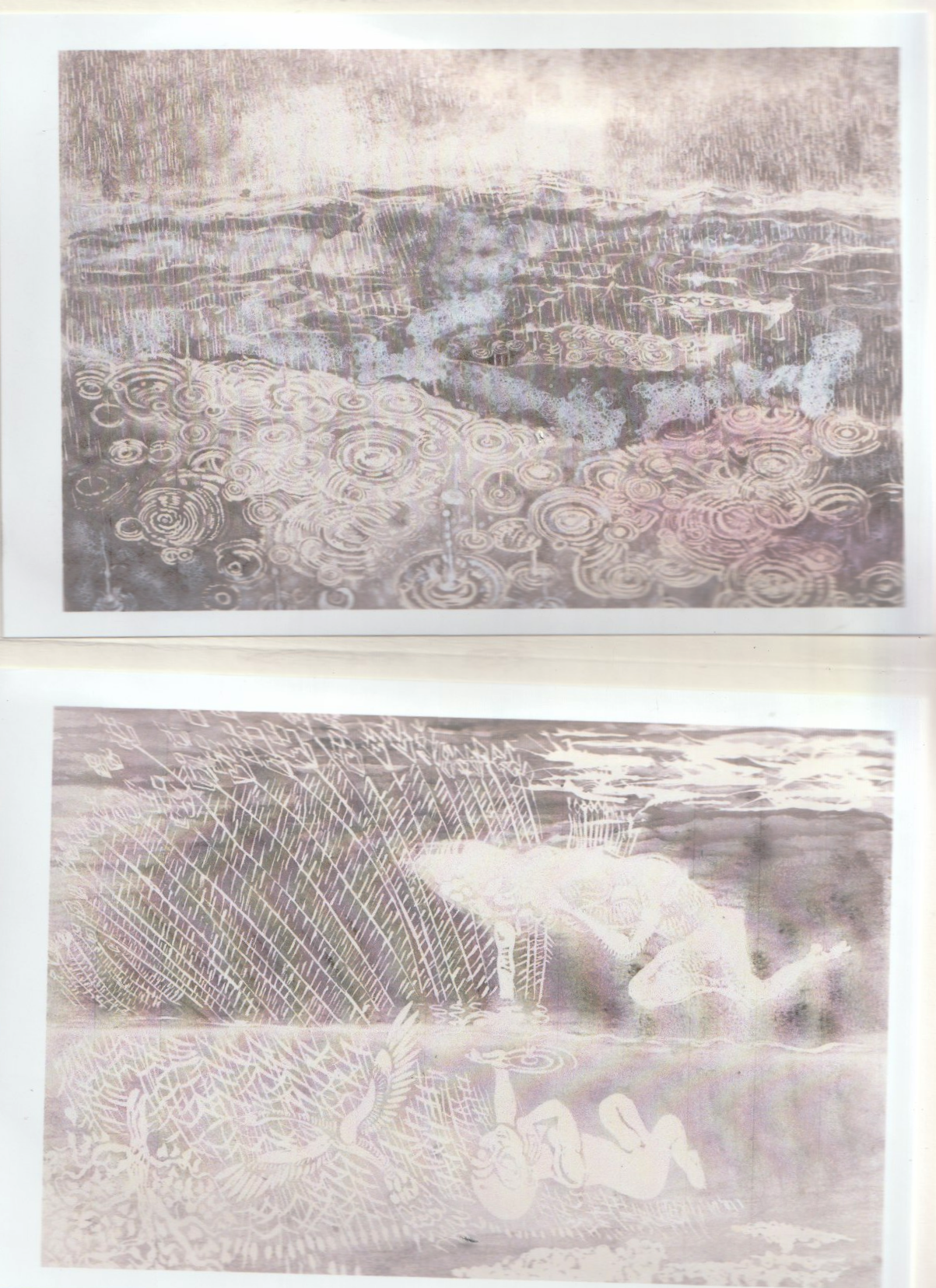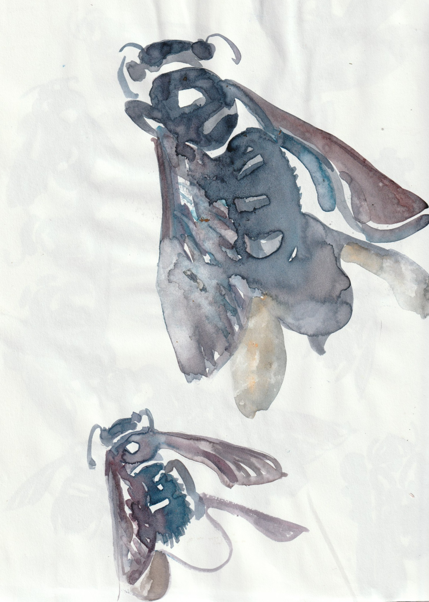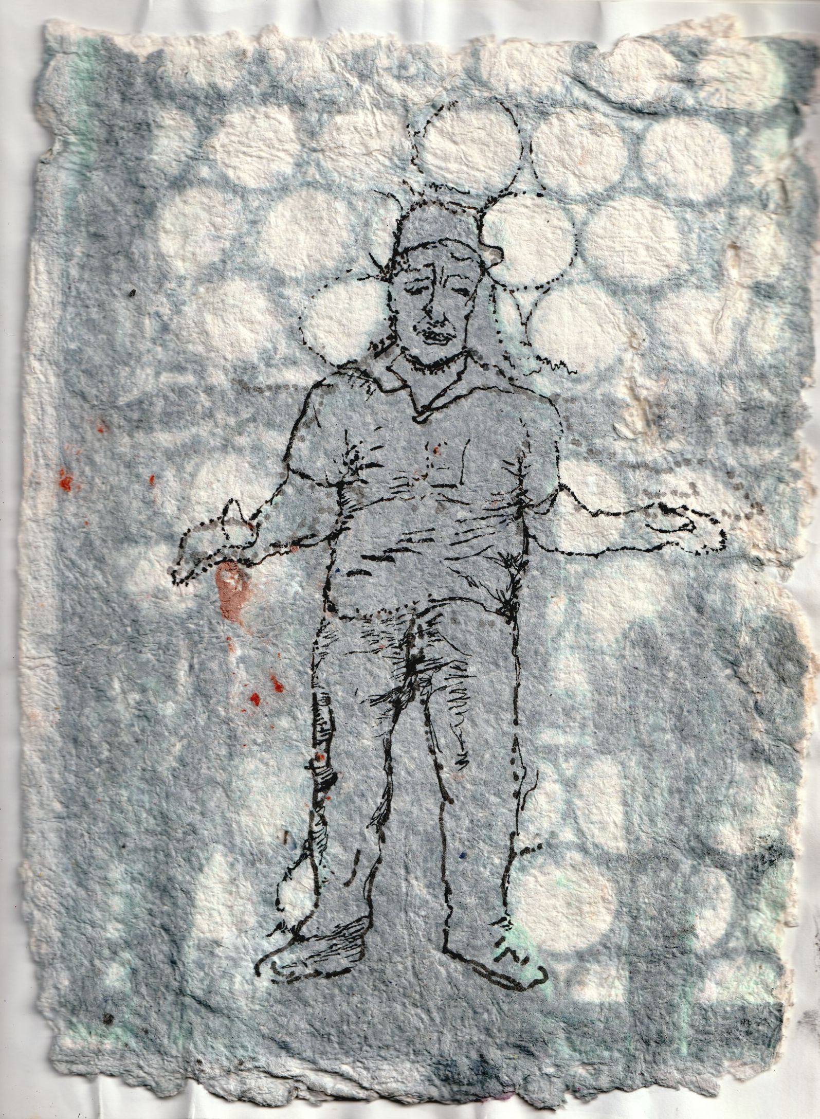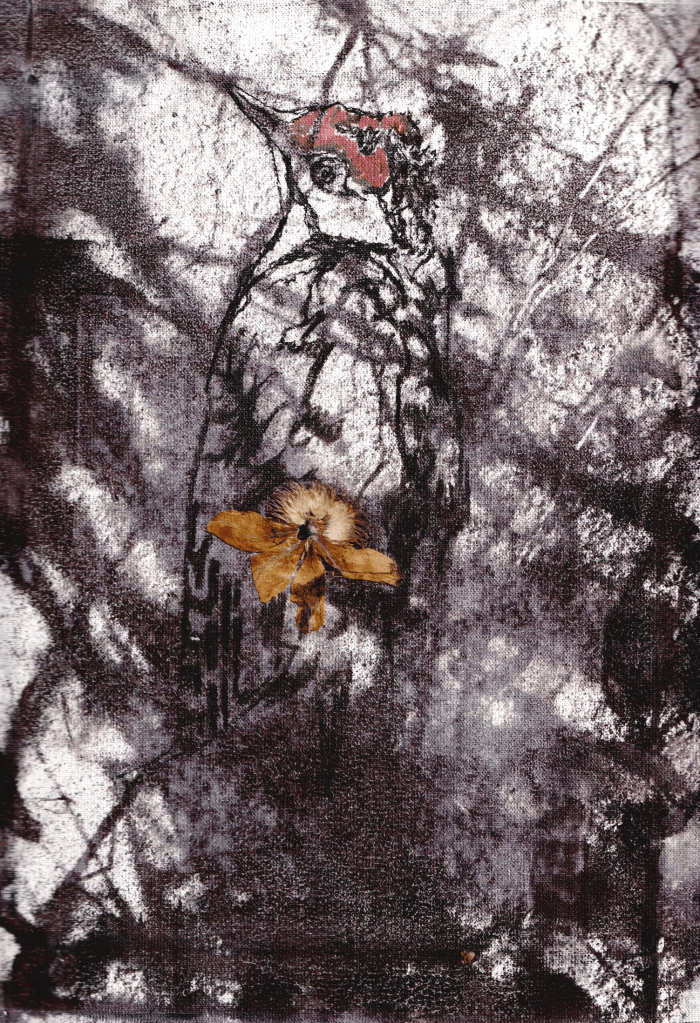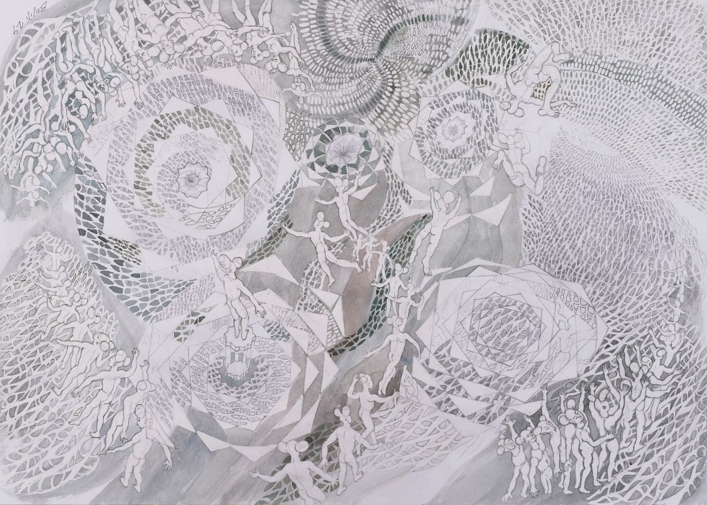 - aux surface plus rêches des planétoïdes caillouteux, aux miasmes évanescents, d’univers vaporeux et mélancoliques, tout est prétexte à expérimenter divers matériaux , divers médiums : encre de chine , bulle de savon, sable, gros sel, gouache, de mine de plomb, pigments.