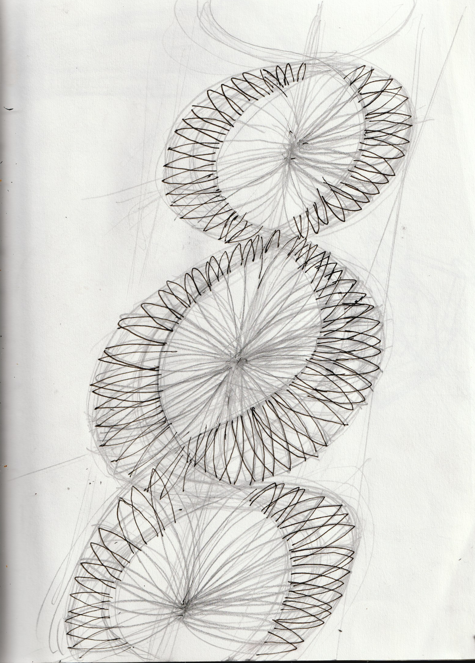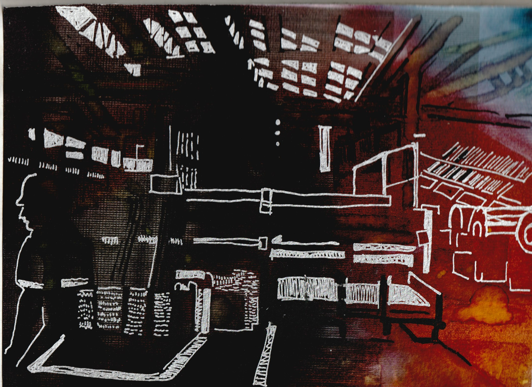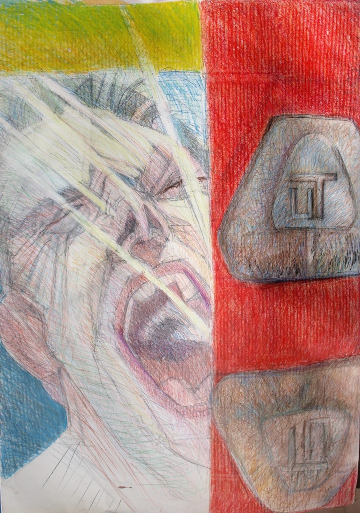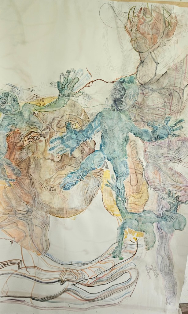 | Les artefacts métalliques interrogent ma pratique, de quelle manières mon intentions de départ va être chahutée, les lignes et les traits « policés » de l’esquisse vont être transformé par l’influx nerveux des fils de fer. Mon crayon suis la trace de ces trames de fil en ombre projetée sur la toile ou sur le papier, |