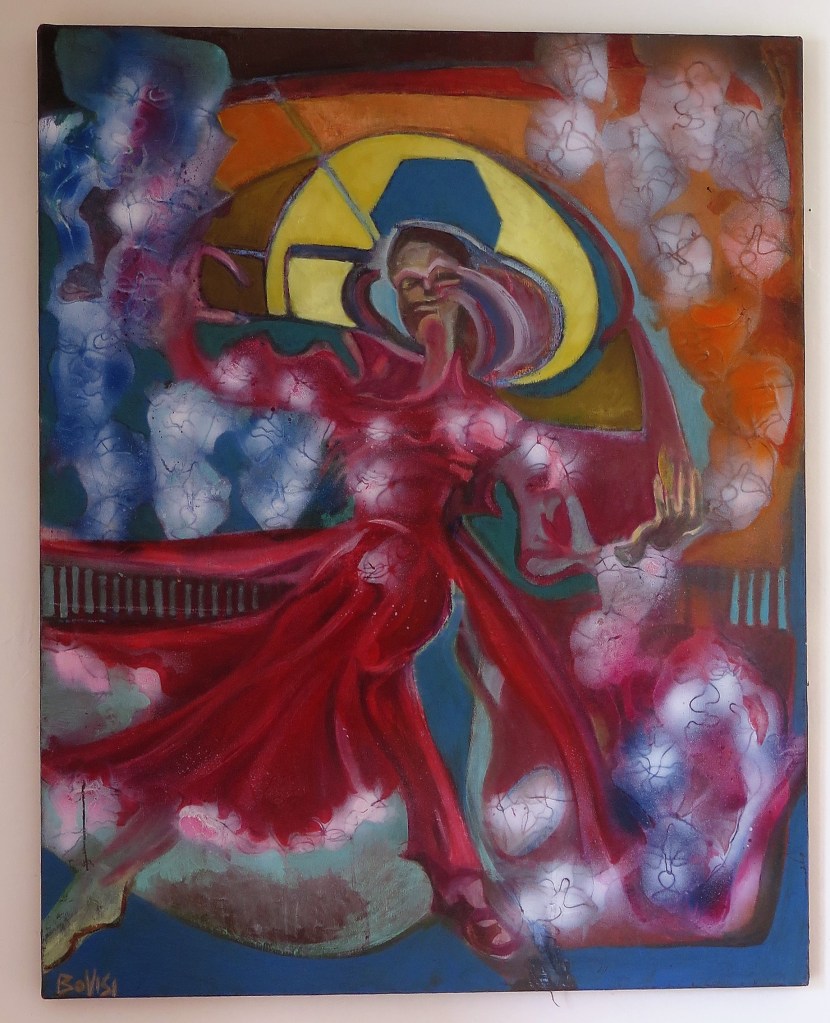- Le bibliste Chouraqui évoque à ce propos la Glèbe, c’est-à-dire la terre. Chez Bovisi, la matière triturée, les couleur imposées sans concession sont une manière de nous rappeler que l’on ne peut jamais s’arrêter à l’apparence du monde et du corps.