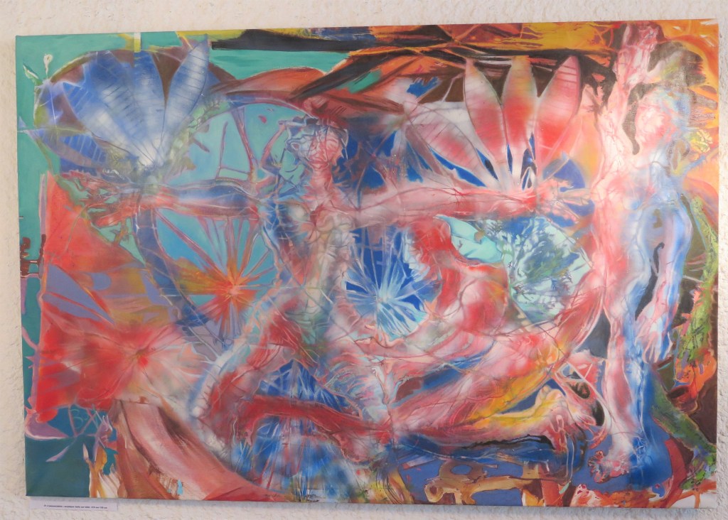 - La tranquillité convoitée par un spectateur désireux d’oublier la dynamique du monde aura beau chercher dans les toiles d‘Eric Bovisi un peu de répit, il n’y en a pas. Le geste, les formes imposent leur dynamique.