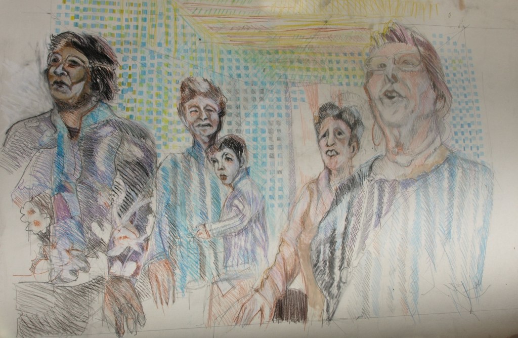 Jacqueline : dessin sur papier technique mixte: aquarelle, crayon de couleur.