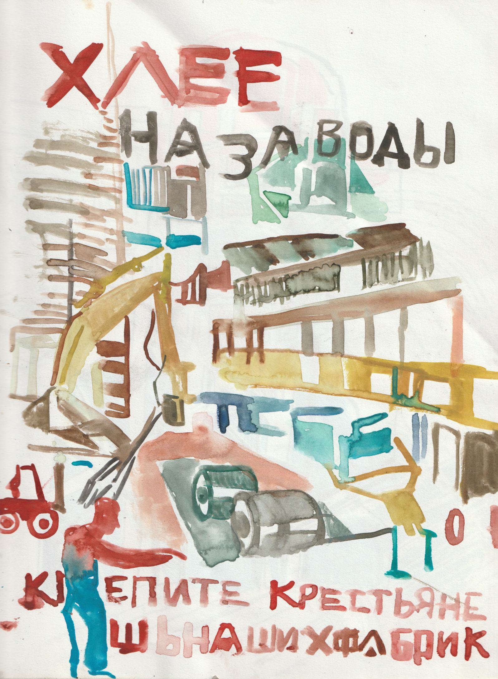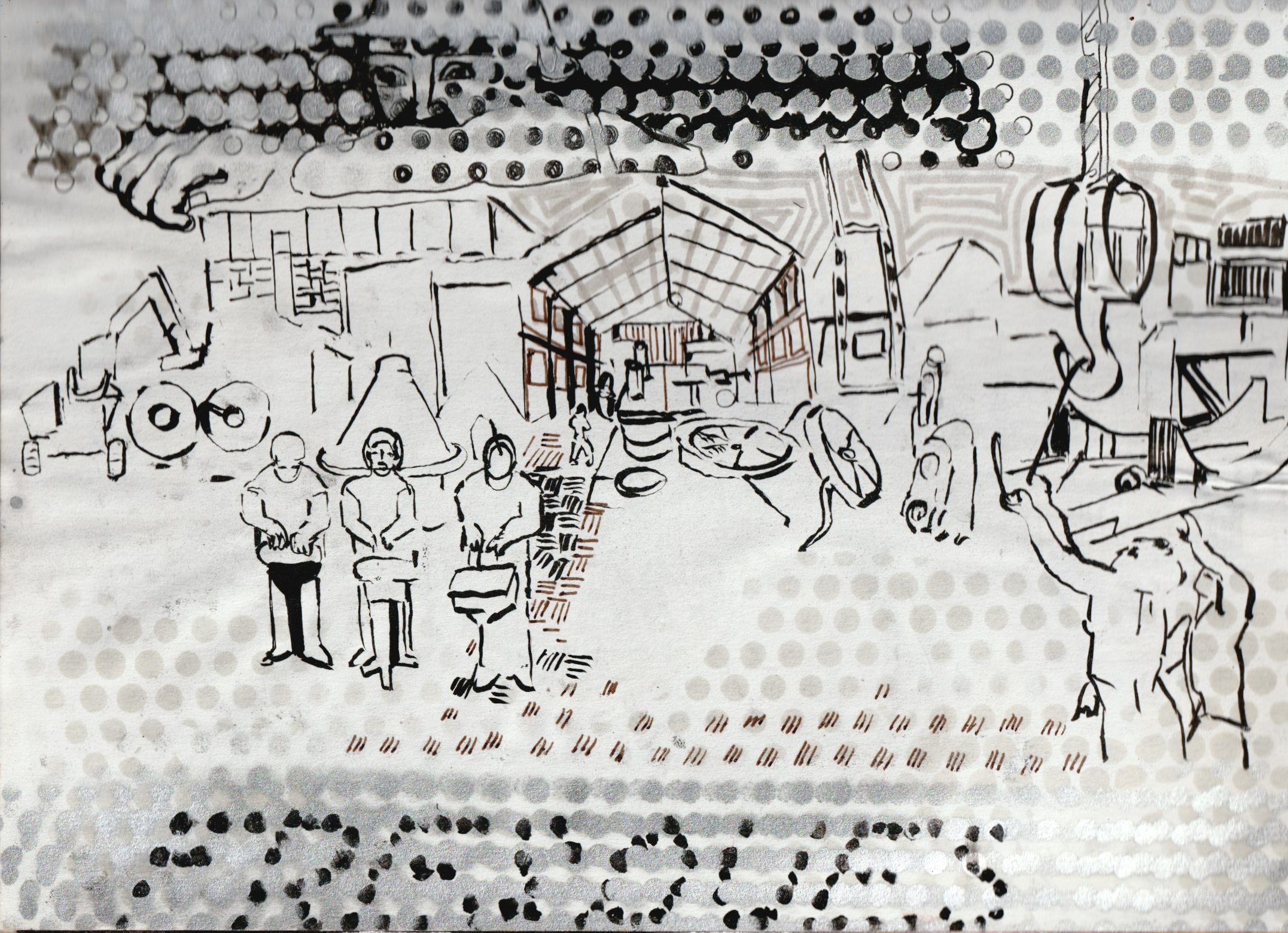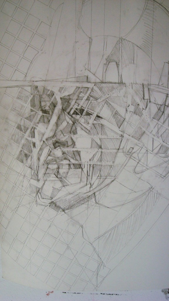 Etape 1, dessin tracé à la gouache 250 sur 140 cm