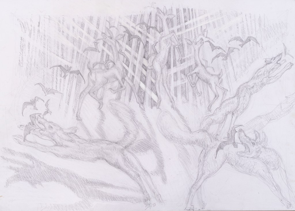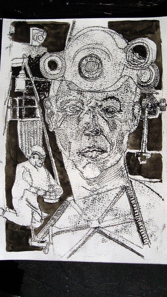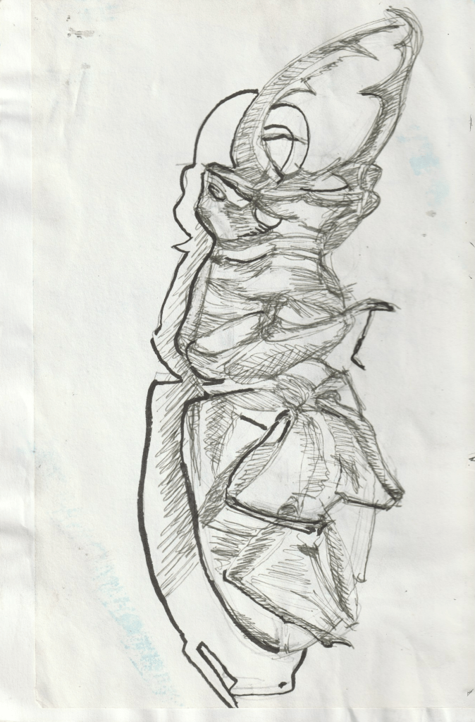 - Puis je retravaille mes esquisses de métal, j’accentue, j’attenue, la cuisine habituelle.