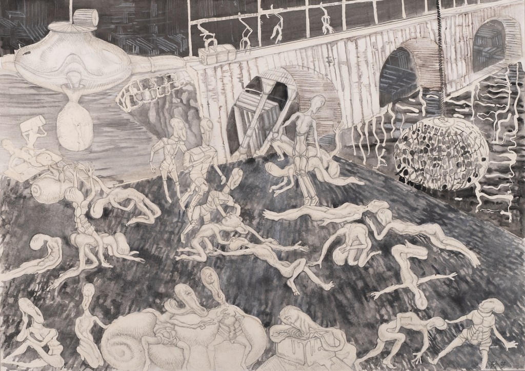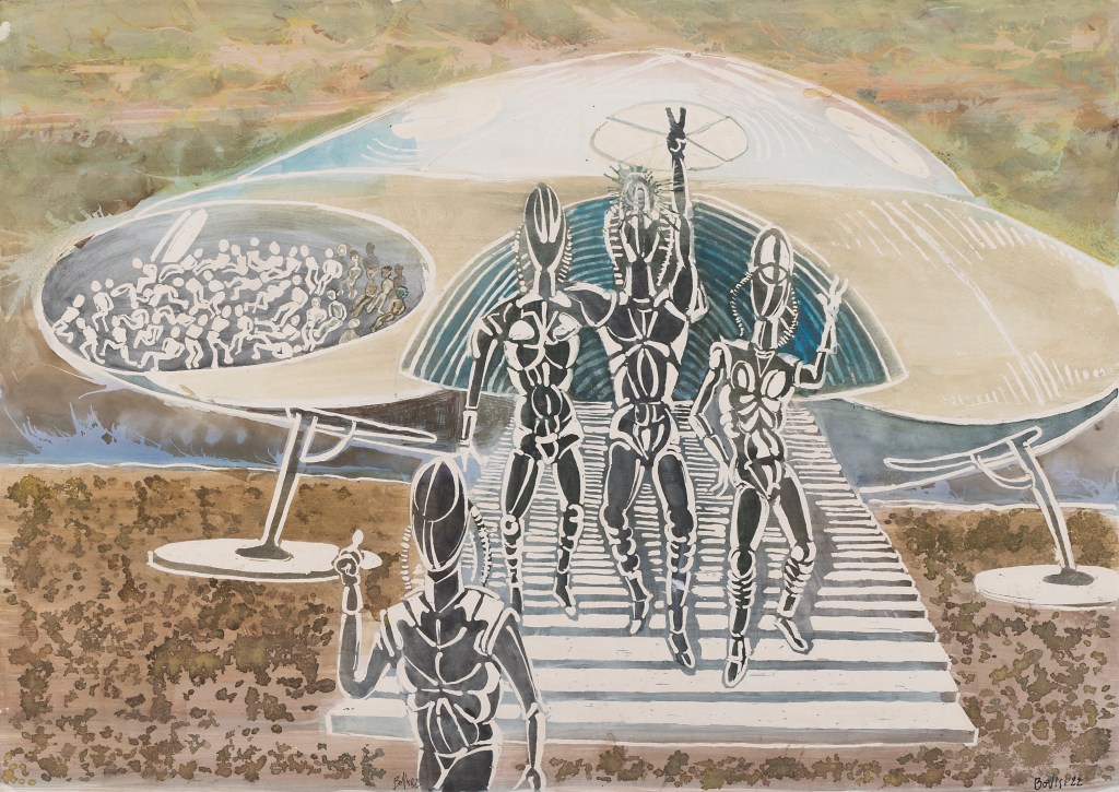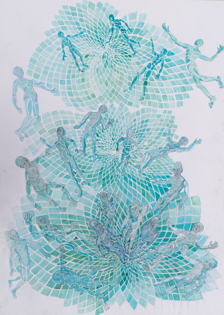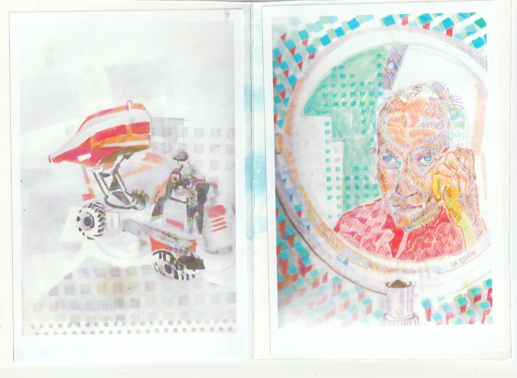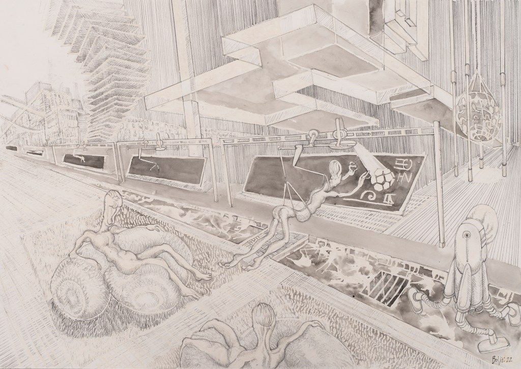 - Une trentaine d’illustration jalonnent ces allégories, regroupées en trois opus: Exos, Planète Antédiluvienne, Baby-boom galactique
