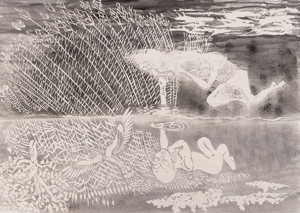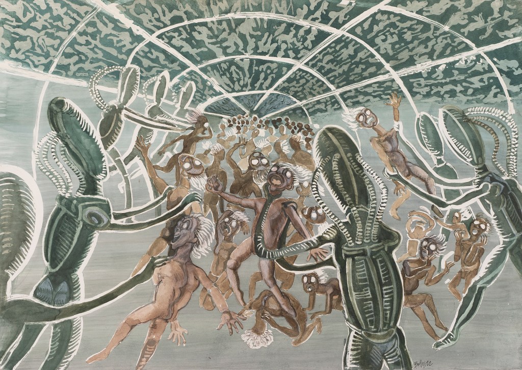 - Les figures sont régies par une force élévatrice, comme chez le Greco ou chez Munch, c’est un désir métaphysique dont il est question. Celui-ci trouble l’âme et le corps pour arracher l’homme à une torpeur trop confortable. »