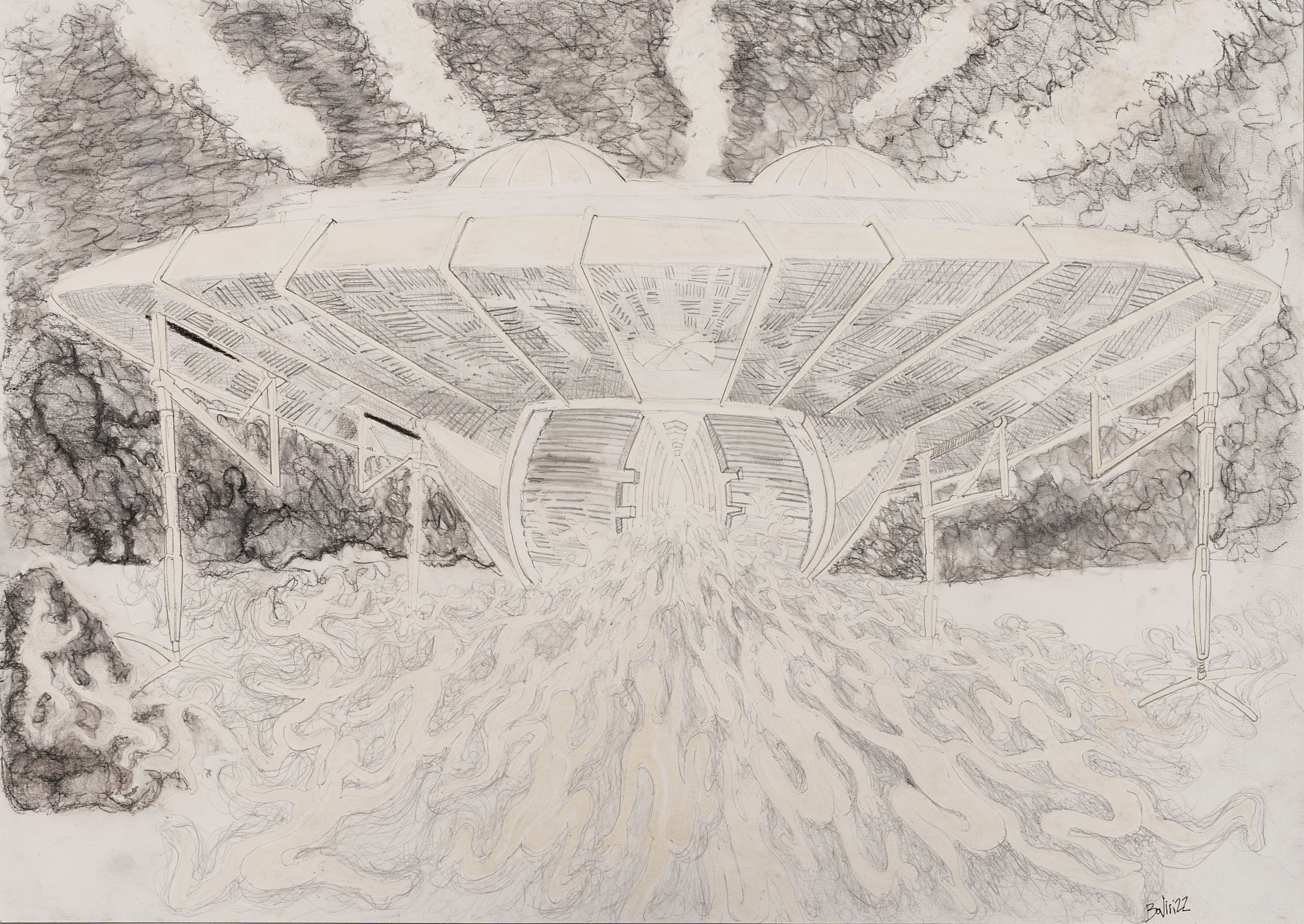 - Le cadre de l’expérience est minutieusement préparé , le tressage des treillis, des armatures, les installations, cela est laborieux, qu’importe une fois la machinerie de métal mis en place le champ d’expérience est ouvert .