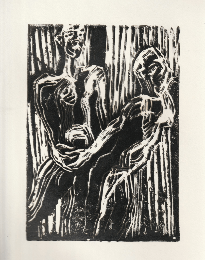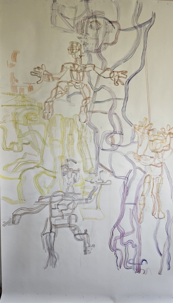 - les corps sont allongés, fragmentés, englués dans la pâte évoquant la finitude de l’homme.