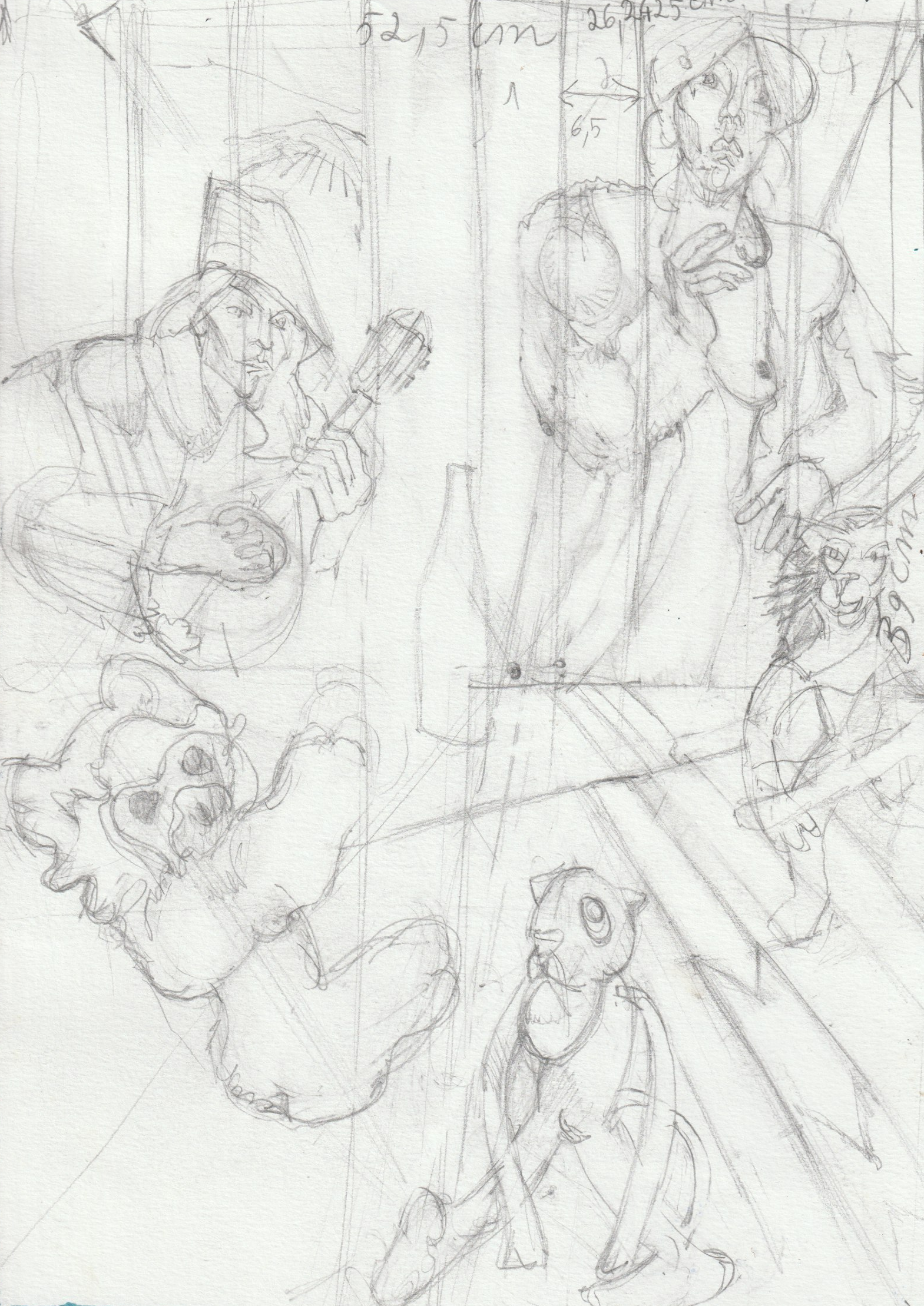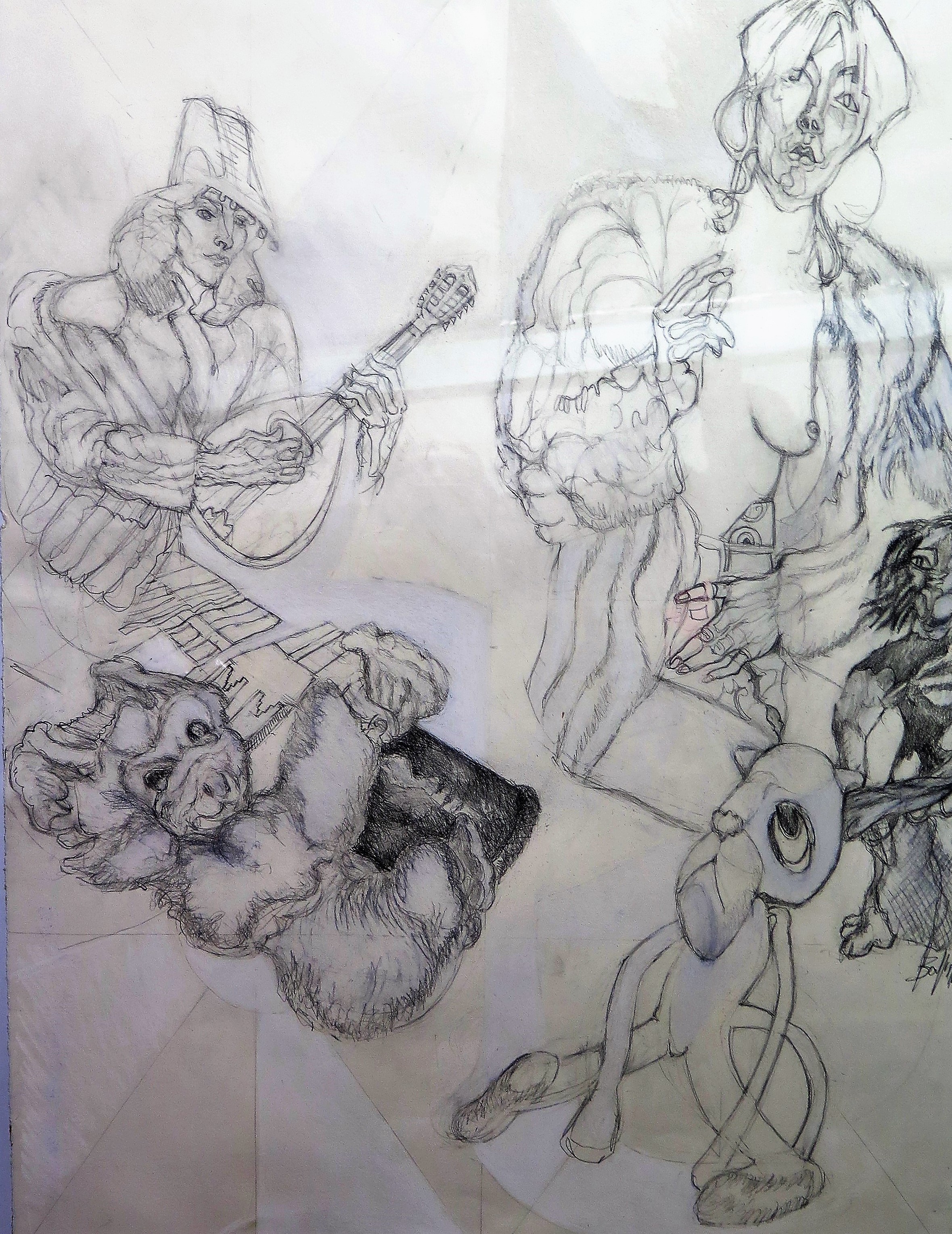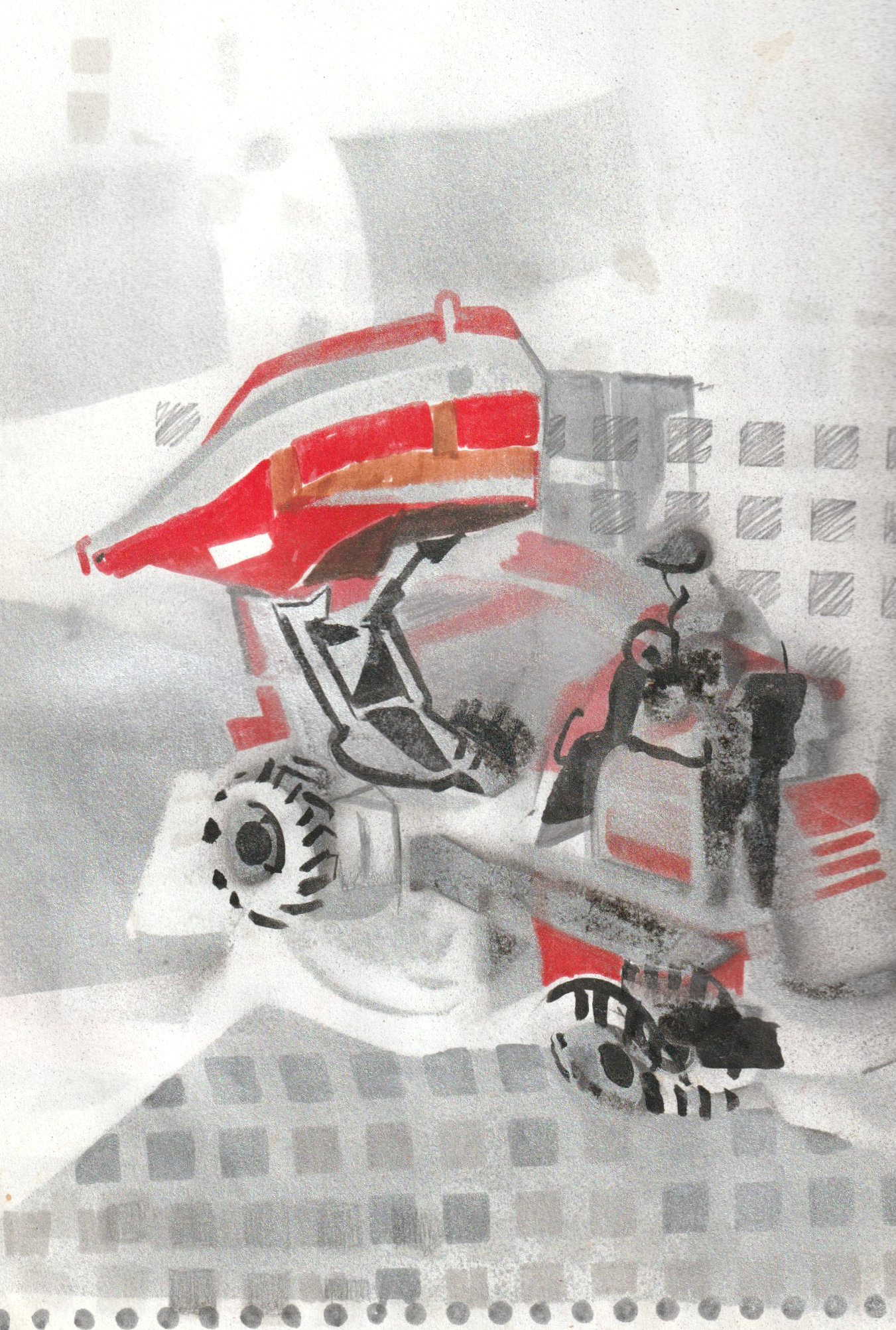 Technique mixte sur papier: mine de plomb, gouache, aquarelle/ format A3
