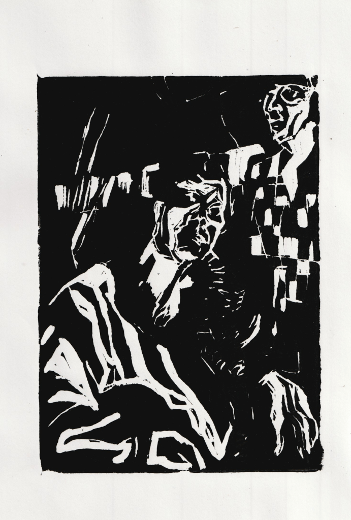 - J’ai conçu les illustrations sans le support du texte mais sans doute imprégné par les séries d’images conçues pour les Nouvelles de Véronique Bourguinet .