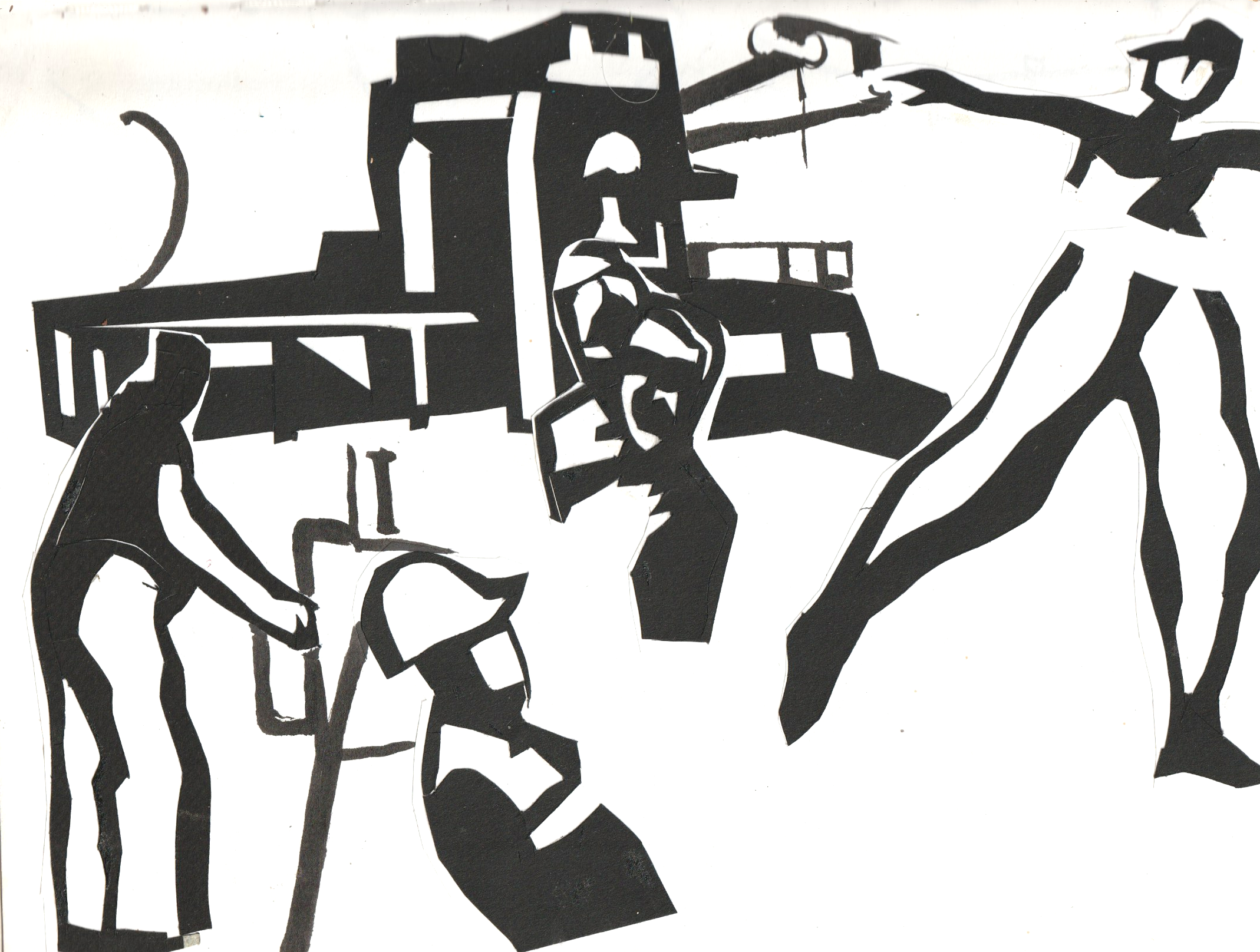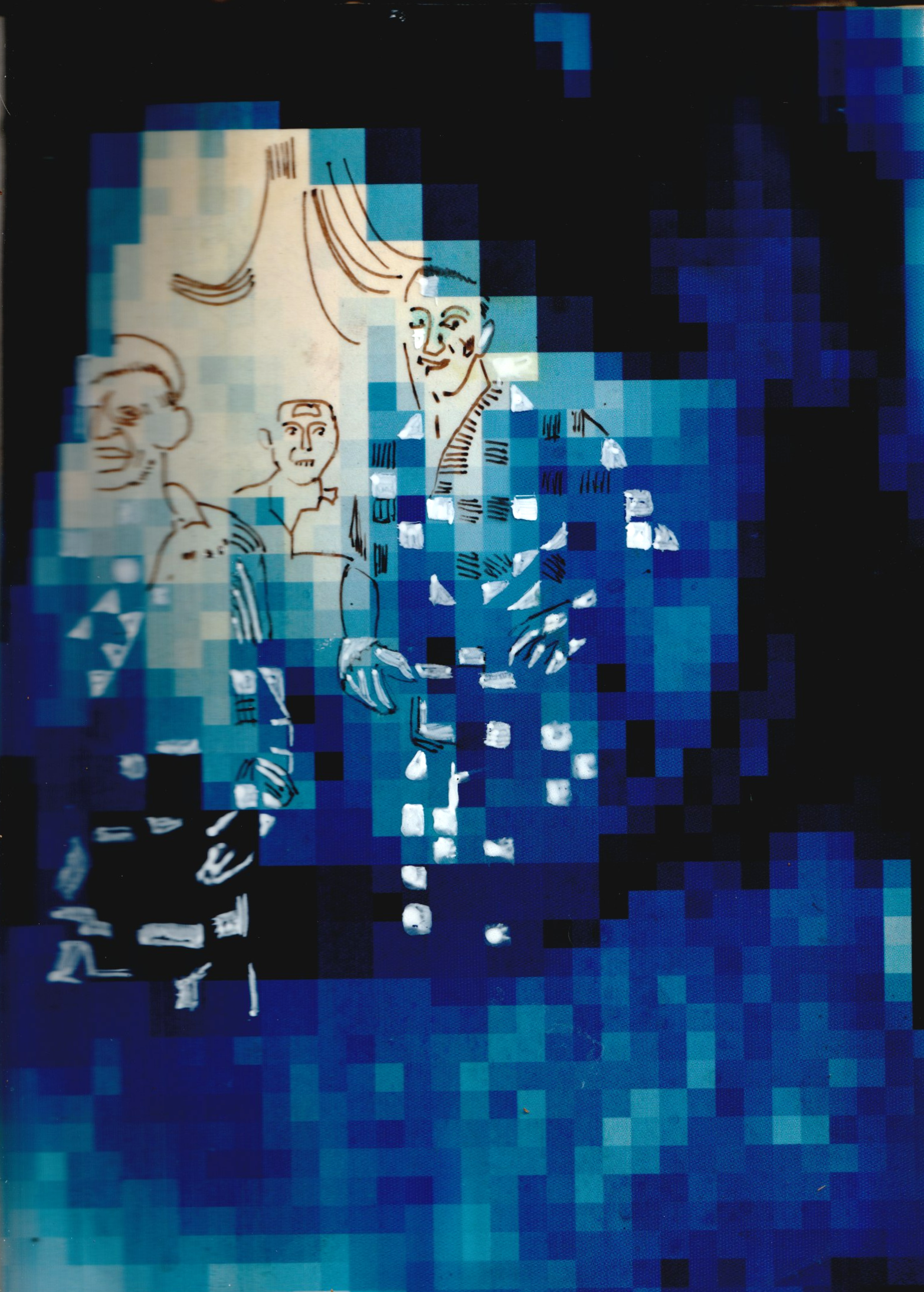 - Quelques années plus tard, j’ai utilisé cette technique de projection dans des travaux de peinture. Les ombres de mes personnages étaient directement traitées sur la toile au pinceau.